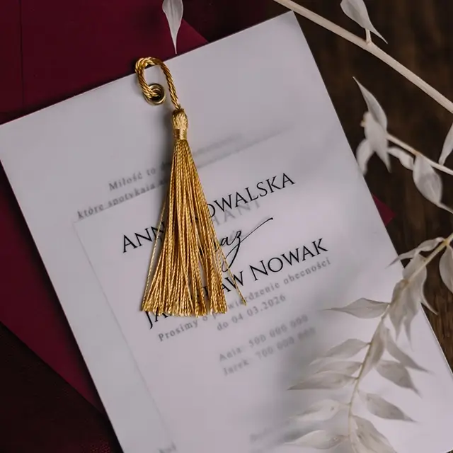 Oferuję bogaty asortyment: nie tylko zaproszenia, ale i winietki, zawieszki na alkohol, menu, vouchery, wizytówki.