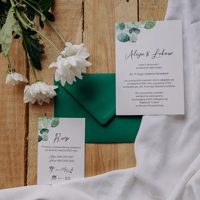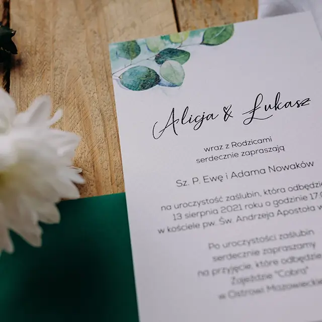 Do zaproszeń możesz zamówić dodatki w momencie składania zamówienia lub w terminie bliższym uroczystości.