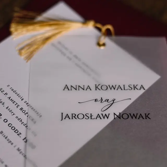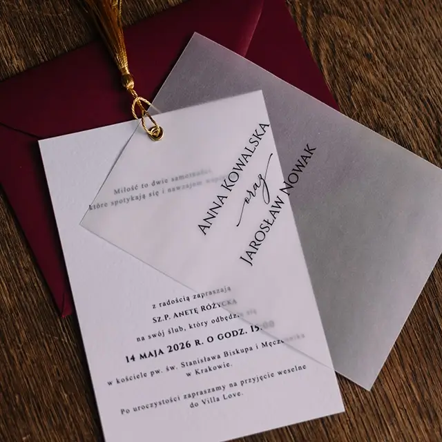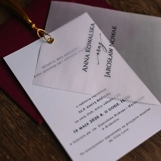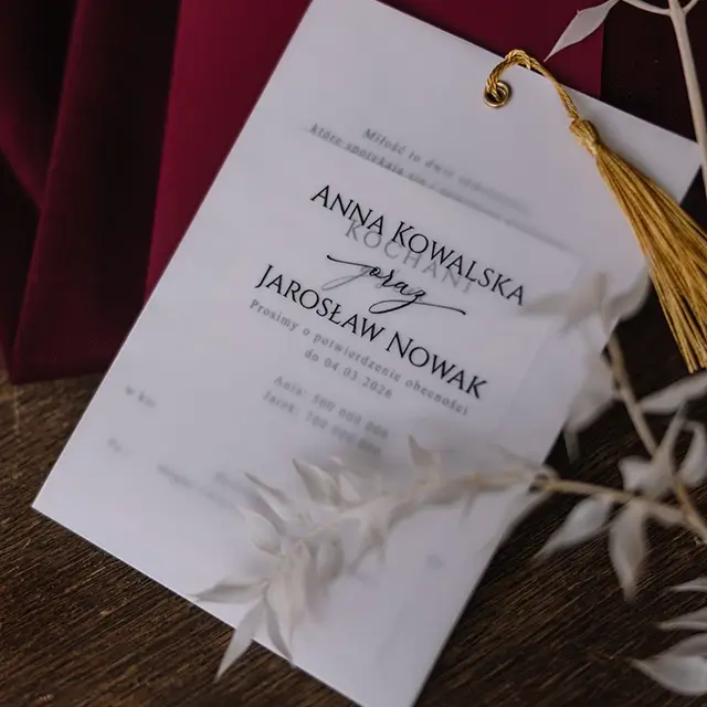 Do zaproszeń możesz zamówić dodatki w momencie składania zamówienia lub w terminie bliższym uroczystości.