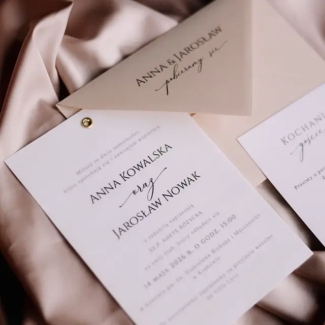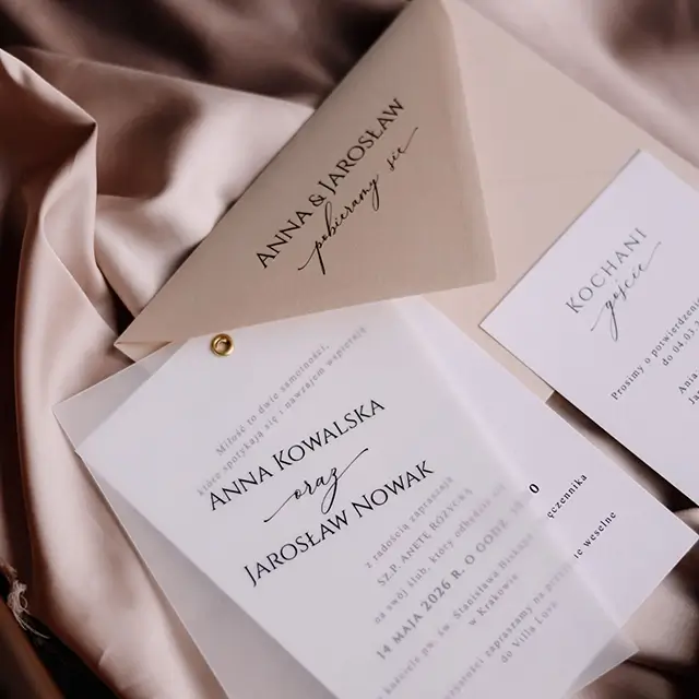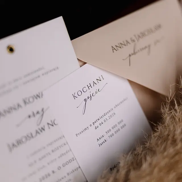 Do zaproszeń możesz zamówić dodatki w momencie składania zamówienia lub w terminie bliższym uroczystości.