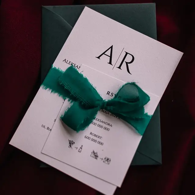 Do zaproszeń możesz zamówić dodatki w momencie składania zamówienia lub w terminie bliższym uroczystości.