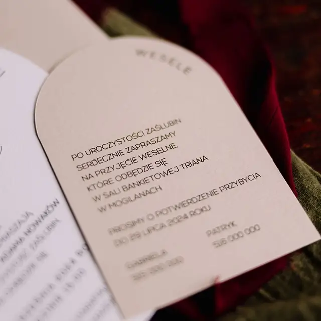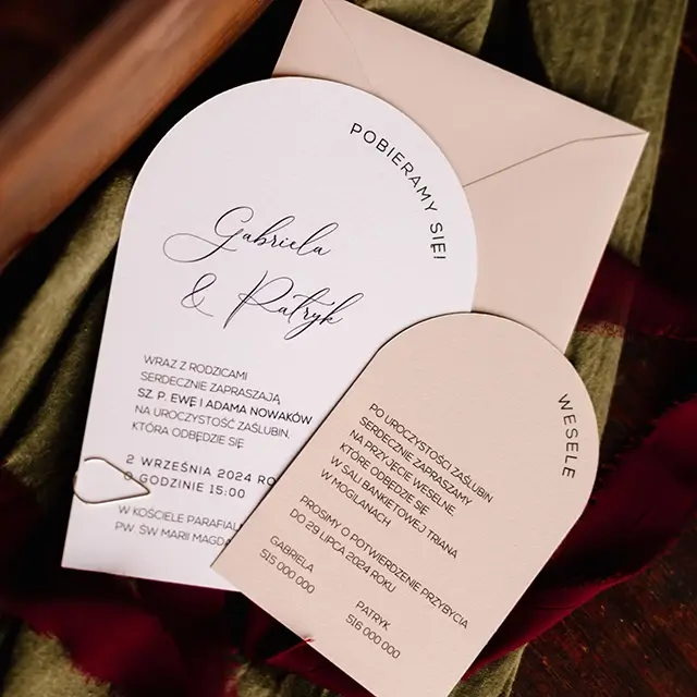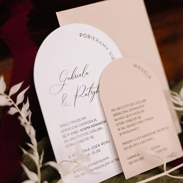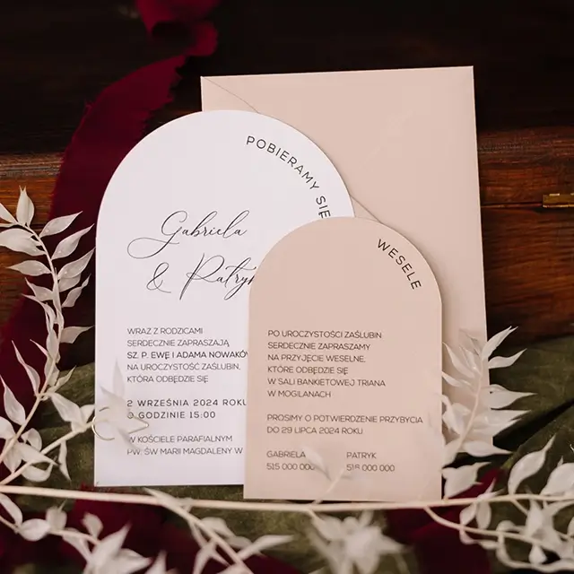 Do zaproszeń możesz zamówić dodatki w momencie składania zamówienia lub w terminie bliższym uroczystości.