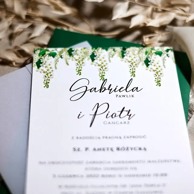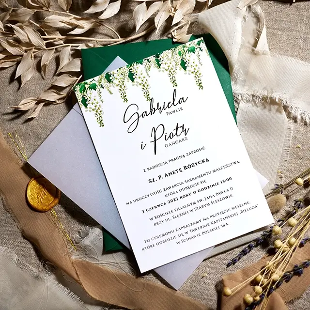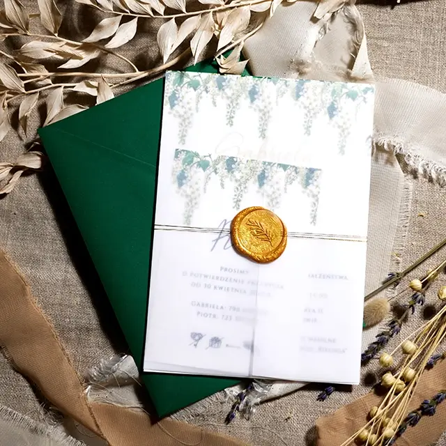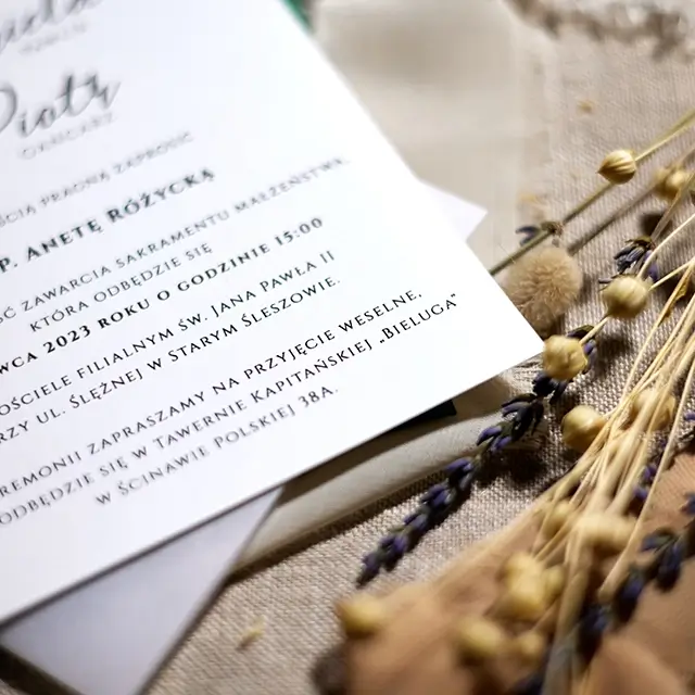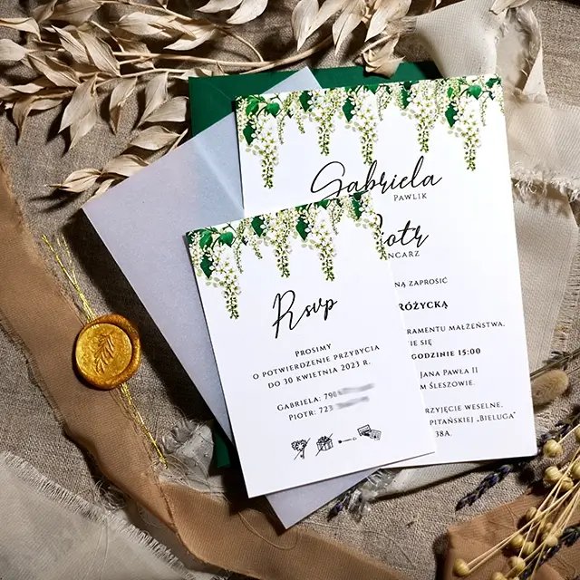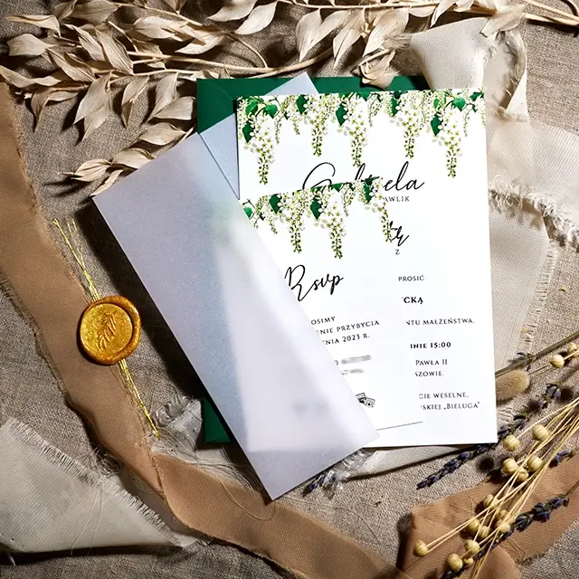 Do zaproszeń możesz zamówić dodatki w momencie składania zamówienia lub w terminie bliższym uroczystości.