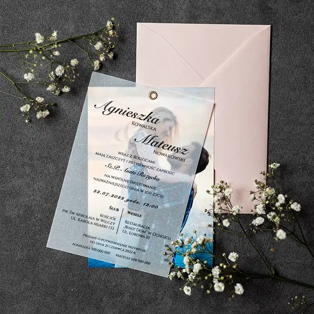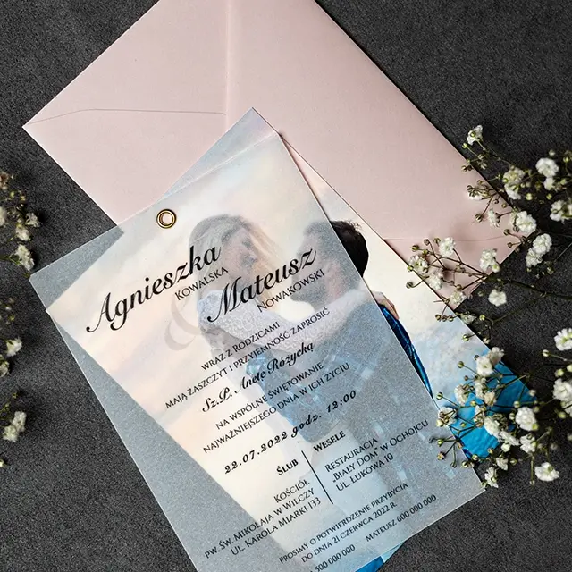 Do zaproszeń możesz zamówić dodatki w momencie składania zamówienia lub w terminie bliższym uroczystości.