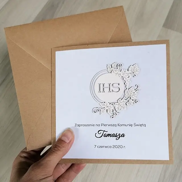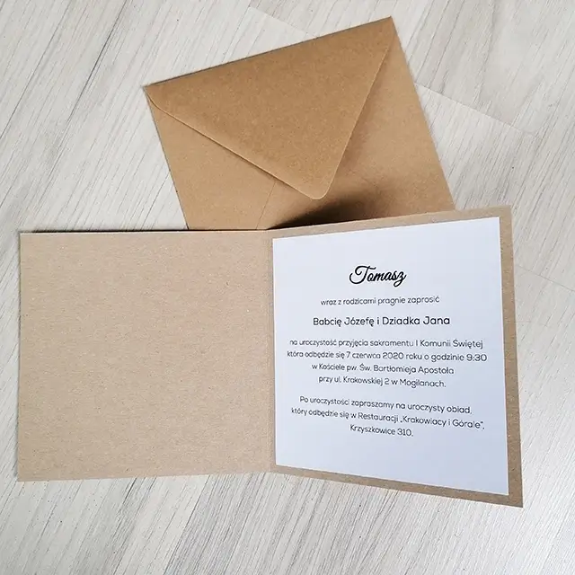 Na zaproszeniu zostały przedstawiony przykładowy wybór czcionek oraz ułożenia tekstów a także rebusów – istnieje możliwość zmiany.