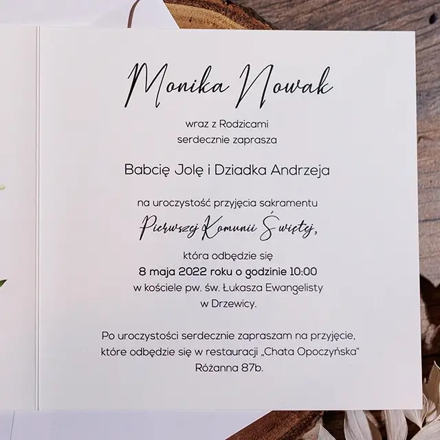Do zaproszeń możesz zamówić dodatki w momencie składania zamówienia lub w terminie bliższym uroczystości.