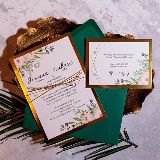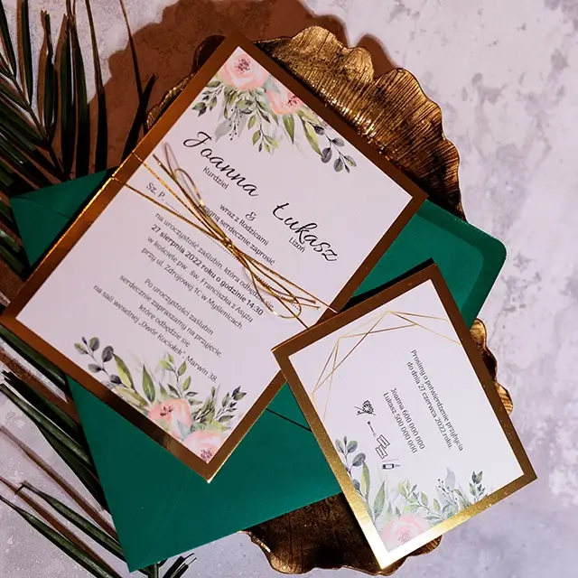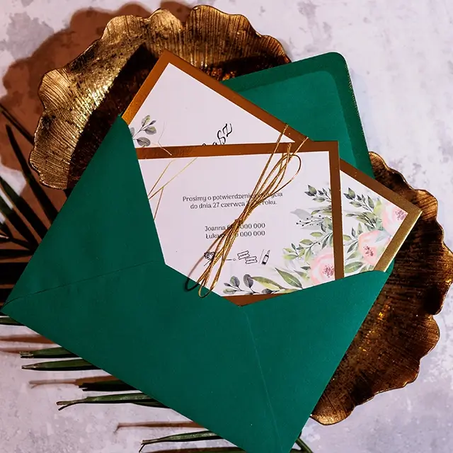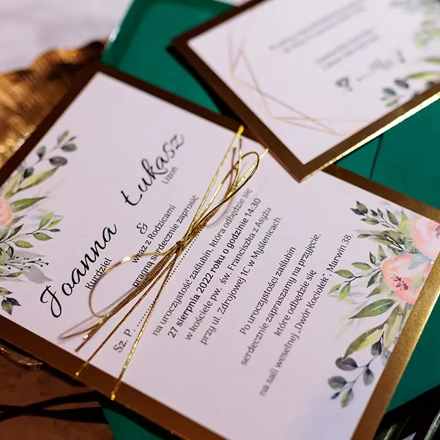Do zaproszeń możesz zamówić dodatki w momencie składania zamówienia lub w terminie bliższym uroczystości.