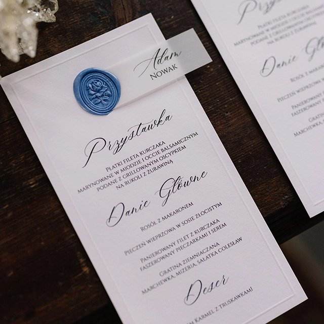 Do zaproszeń możesz zamówić dodatki w momencie składania zamówienia lub w terminie bliższym uroczystości.