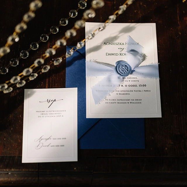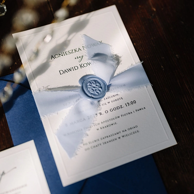 Do zaproszeń możesz zamówić dodatki w momencie składania zamówienia lub w terminie bliższym uroczystości.
