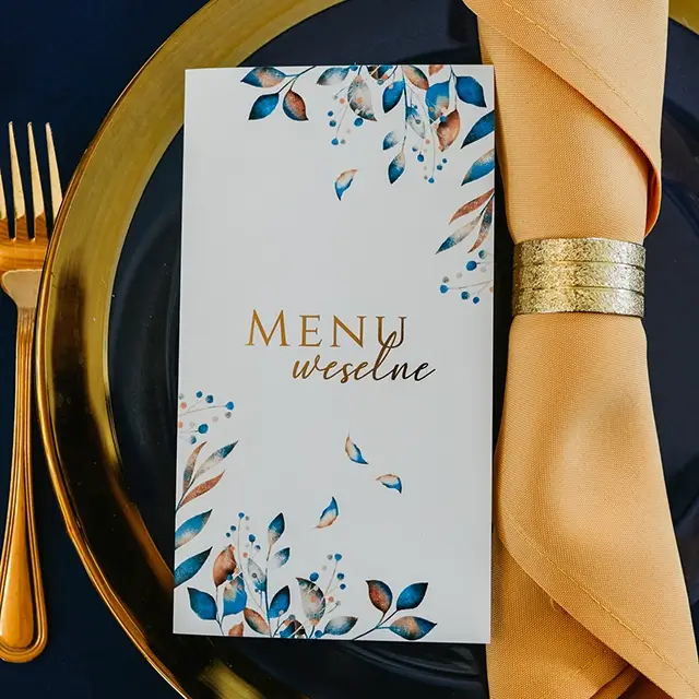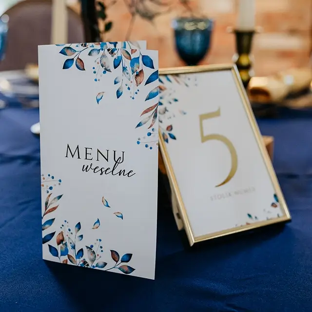 możesz zamówić: winietki, zawieszki na alkohol, wkładki, karteczki z podziękowaniami dla gości, karty menu, numerki na stoły, plan usadzenia gości, księgę gości, pudełko na koperty, pudełka na ciasto weselne