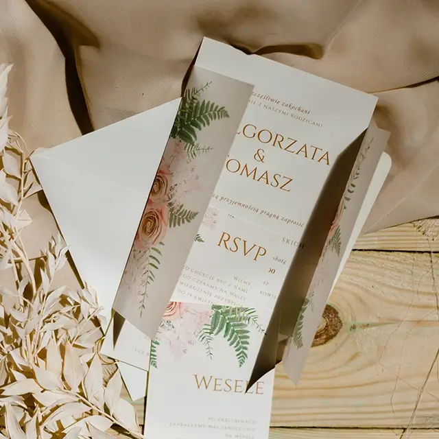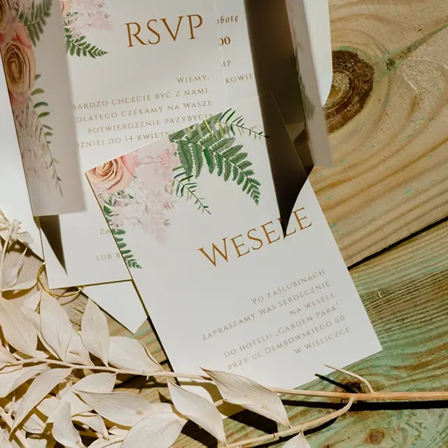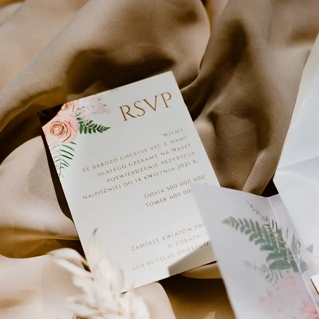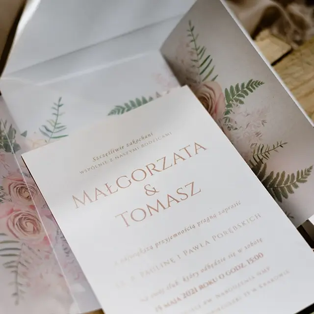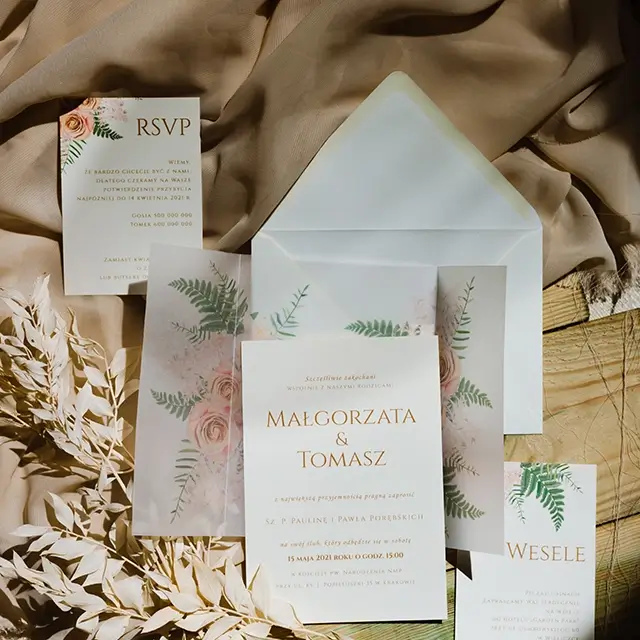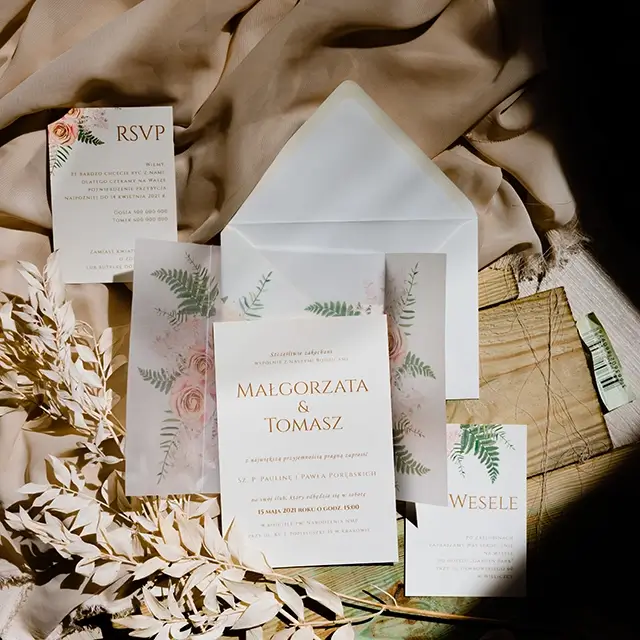 Do zaproszeń możesz zamówić dodatki w momencie składania zamówienia lub w terminie bliższym uroczystości.
