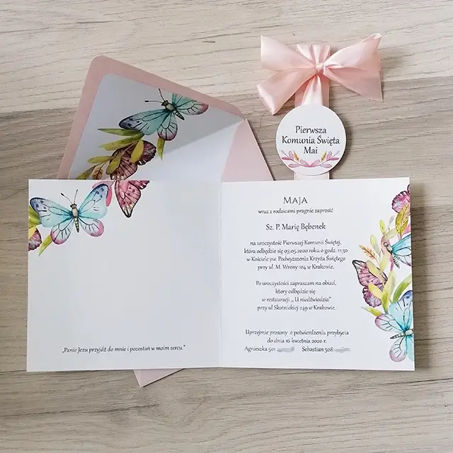 Do zaproszeń możesz zamówić dodatki w momencie składania zamówienia lub w terminie bliższym uroczystości.