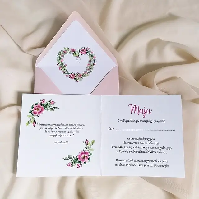 Do zaproszeń możesz zamówić dodatki w momencie składania zamówienia lub w terminie bliższym uroczystości.