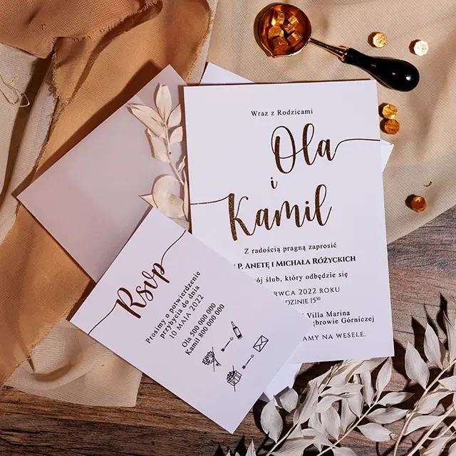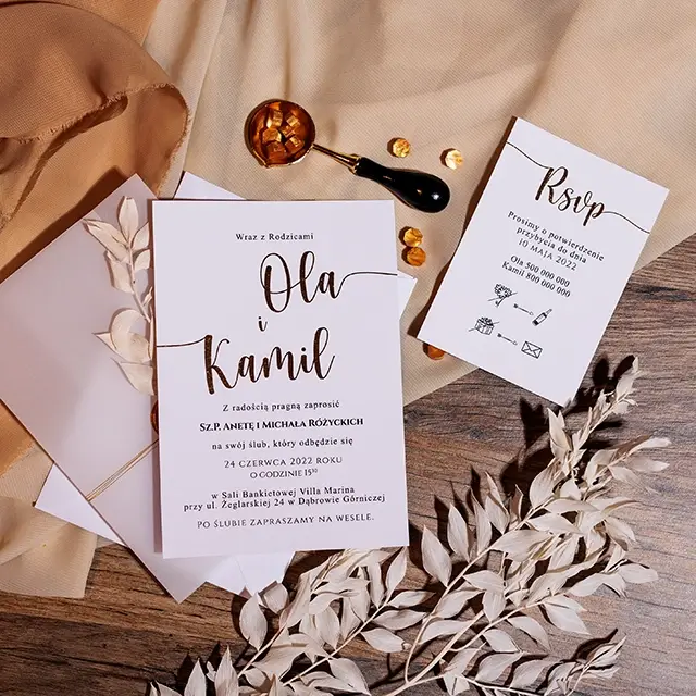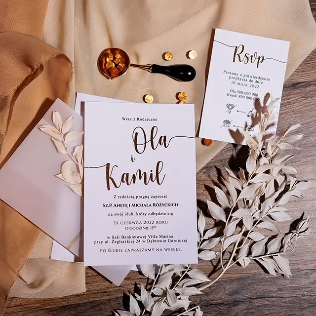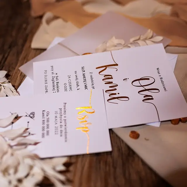 Do zaproszeń możesz zamówić dodatki w momencie składania zamówienia lub w terminie bliższym uroczystości.