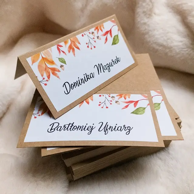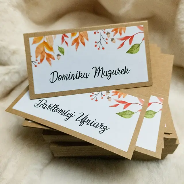 możesz zamówić: winietki, zawieszki na alkohol, wkładki, karteczki z podziękowaniami dla gości, karty menu, numerki na stoły, plan usadzenia gości, księgę gości, pudełko na koperty, pudełka na ciasto weselne