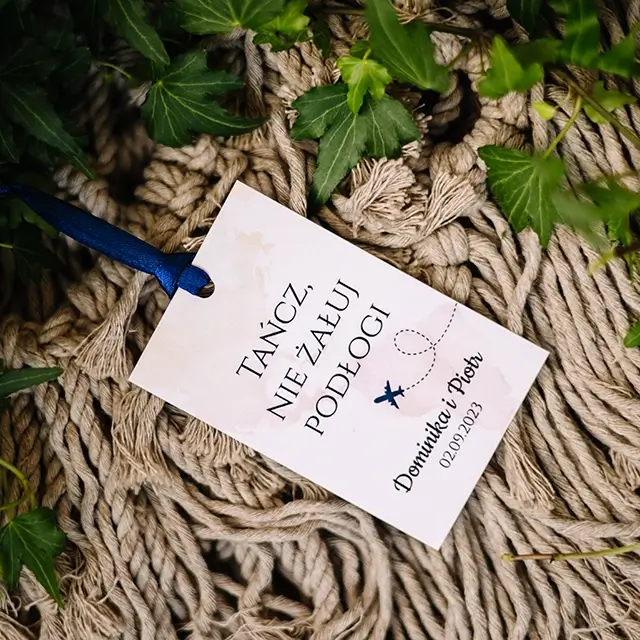 możesz zamówić: winietki, zawieszki na alkohol, wkładki, karteczki z podziękowaniami dla gości, karty menu, numerki na stoły, plan usadzenia gości, księgę gości, pudełko na koperty, pudełka na ciasto weselne
