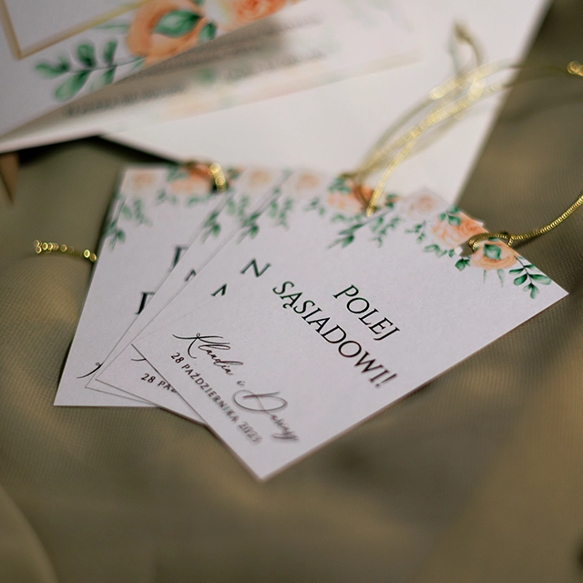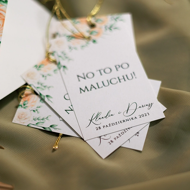Do zaproszeń możesz zamówić dodatki w momencie składania zamówienia lub w terminie bliższym uroczystości.